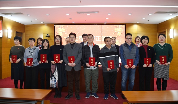 会议表彰了2019年度作出突出贡献的先进集体和优秀个人。中心领导向获得荣誉称号的干部职工颁发了证书。